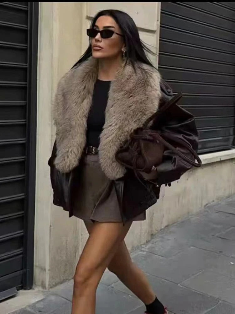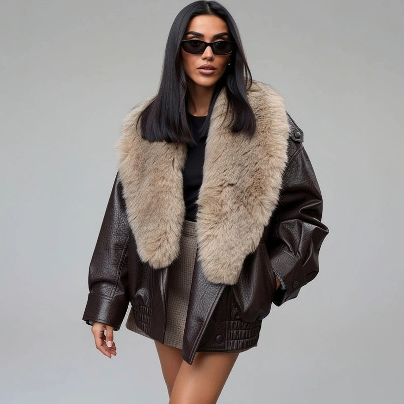 עשוי דמוי עור איכותי עם גזרה באורך רגיל ושרוולים ארוכים, מתאים לעונות הסתיו והחורף.