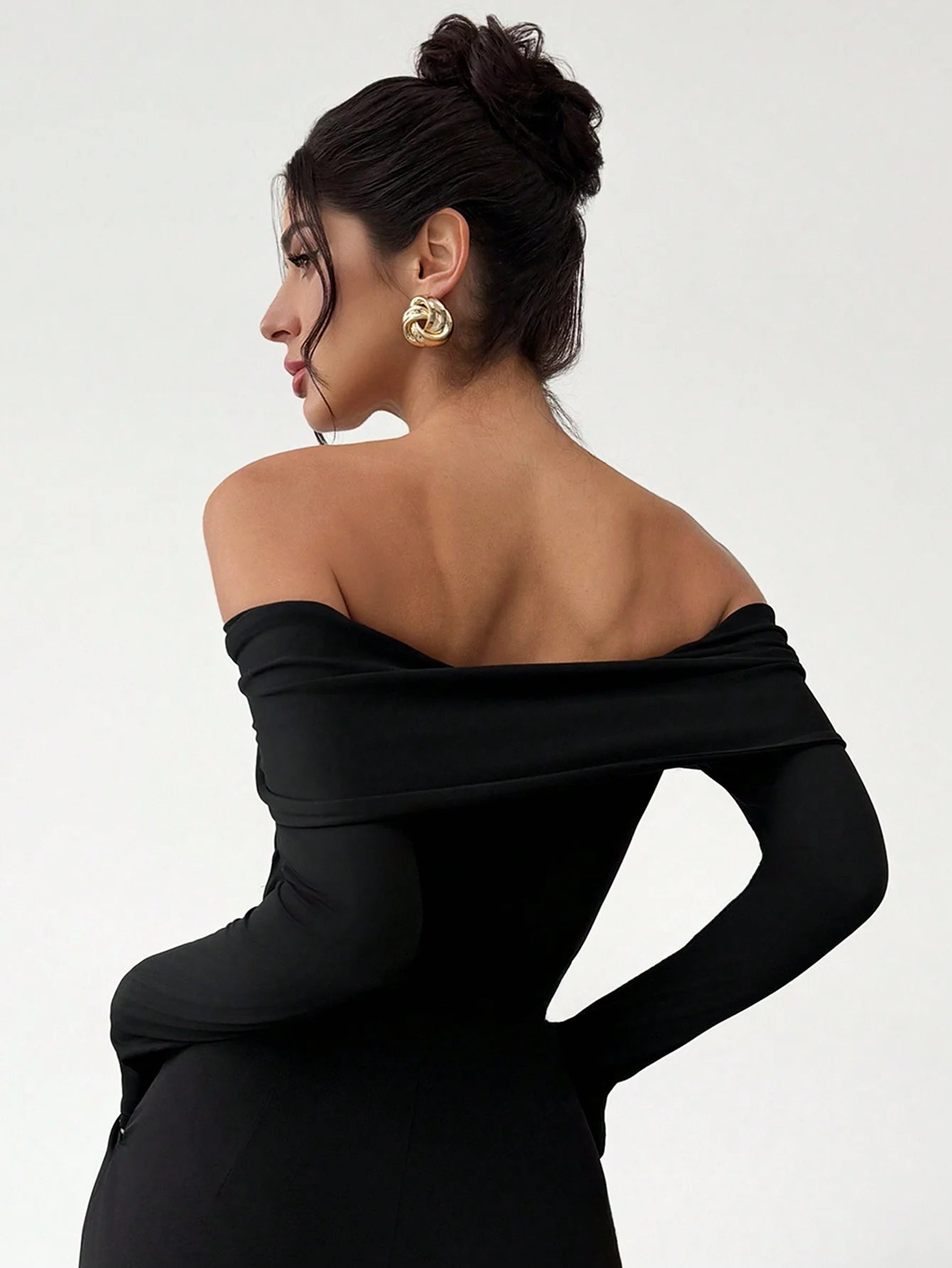 טופ סרוג בגזרה מחמיאה עם בד גמיש במיוחד שמדגיש את קווי הגוף.
