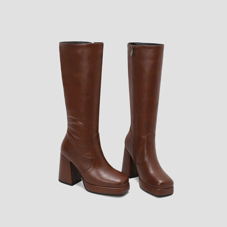 מגפוני עקב עם חרטום מחודד, רצועת אבזם ועקב מרובע המעניקים מראה חזק ומוקפד.
