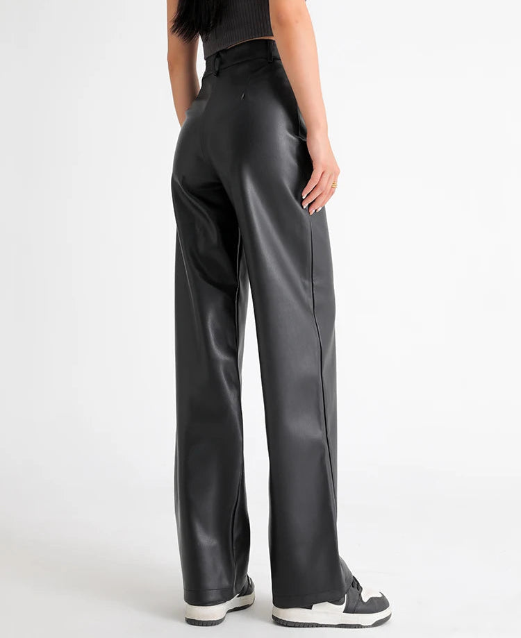 מכנסיים ארוכים בגזרה ישרה עם מותן גבוהה, שמדגישה את קו המותניים ויוצרת מראה מחמיא ונקי.