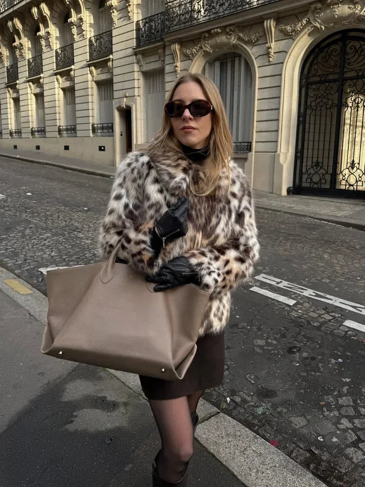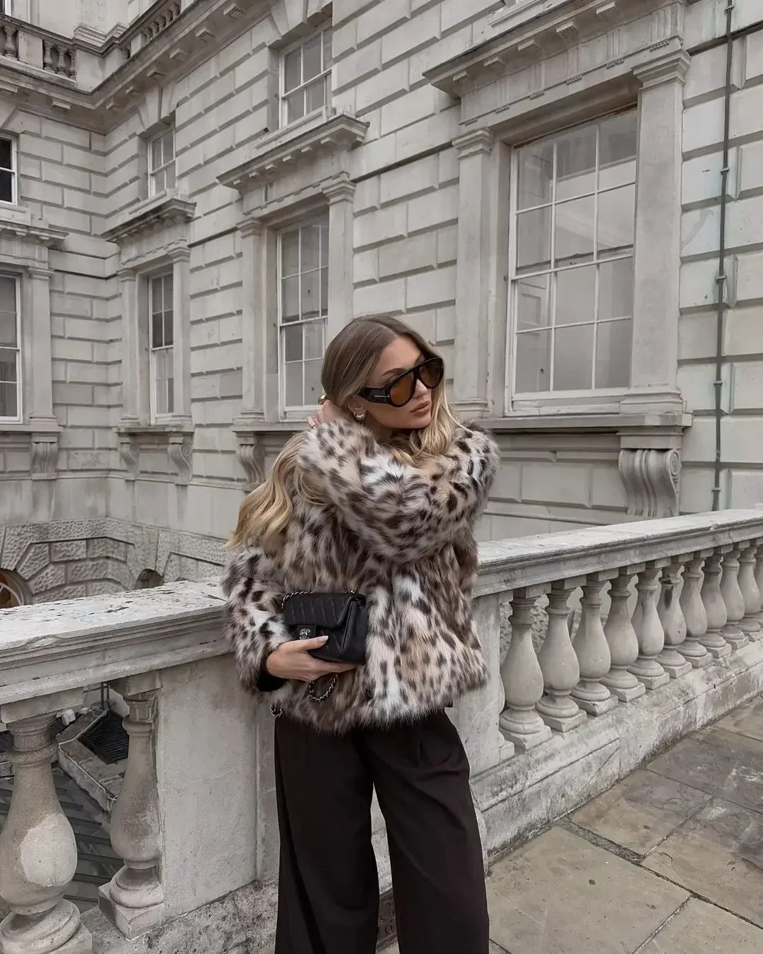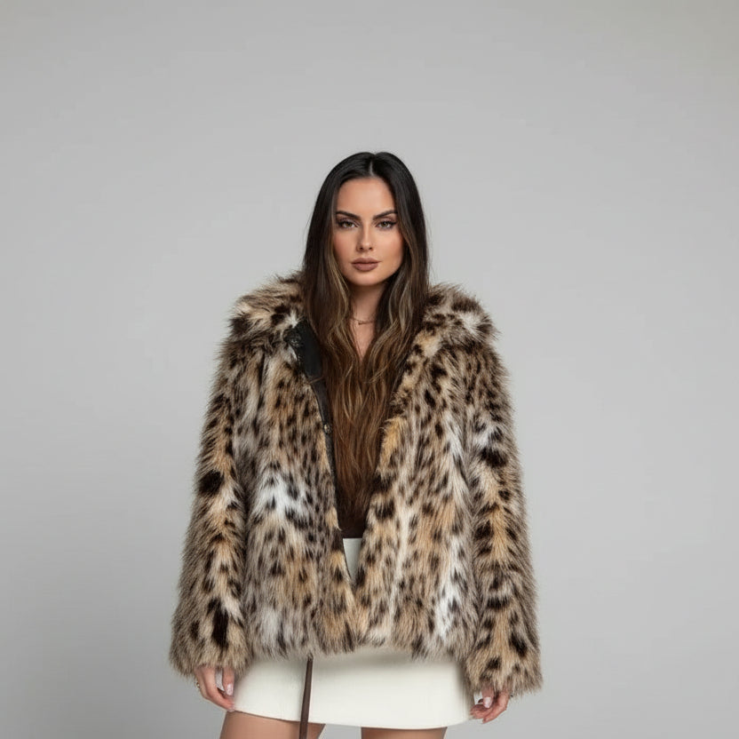 ג׳קט פרווה מדומה בגזרה רחבה שמעניק מראה יוקרתי וחמים בימים הקרים.