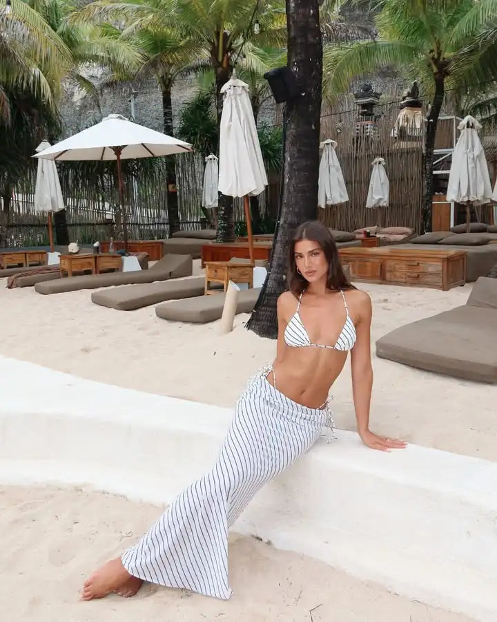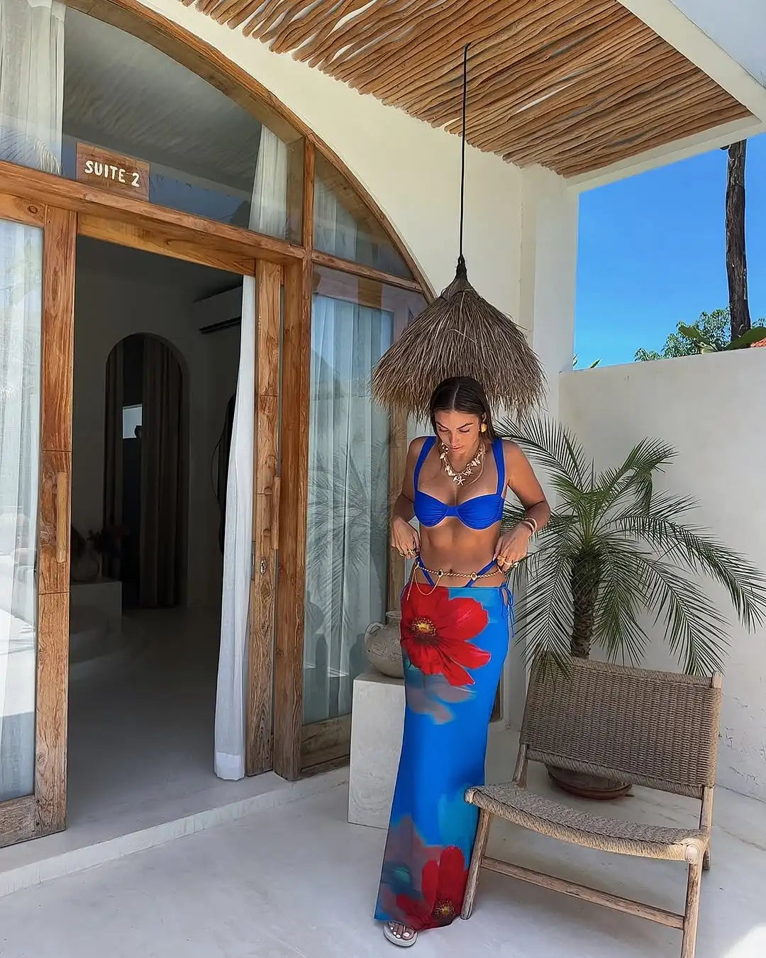 בגד ים בשלושה חלקים בגוון חלק ונקי, עשוי מבד טרילן רך ונעים שמתייבש במהירות. החזייה המעוצבת עם קישוט קשר עדין ותמיכה פנימית מחמיאה למבנה הגוף, בשילוב תחתון בגזרה נמוכה שמשלים את הלוק הקייצי. מושלם למסיבות בריכה, חוף או חופשה מפנקת.