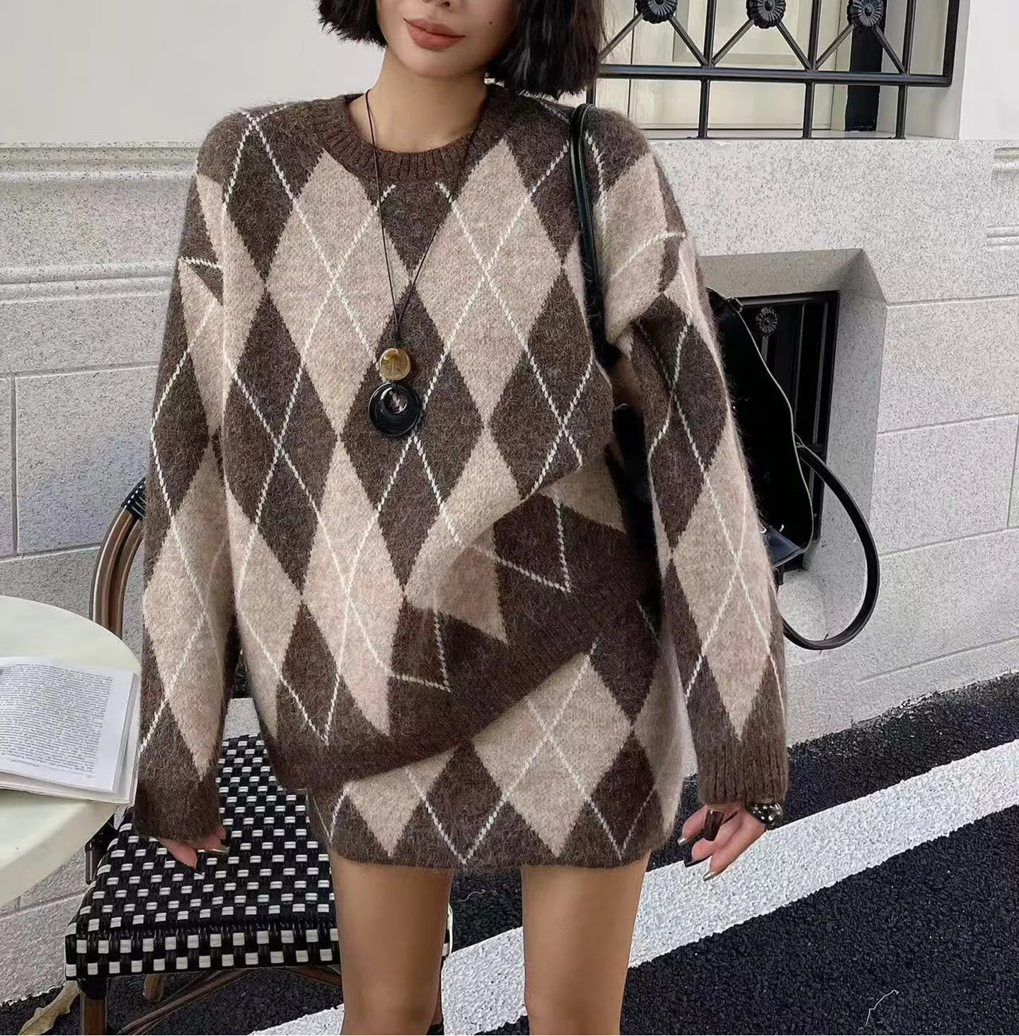 סט סריג בגזרה רחבה עם צווארון עגול למראה נינוח ונוח.