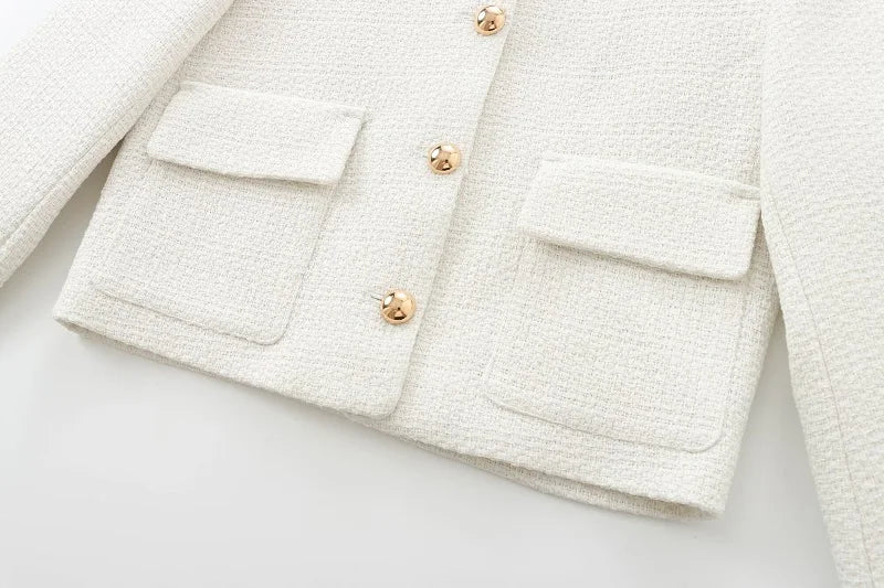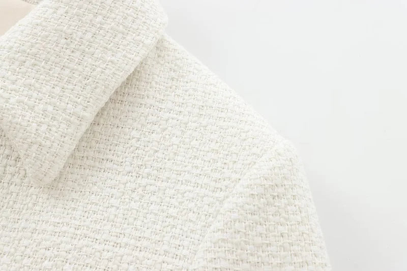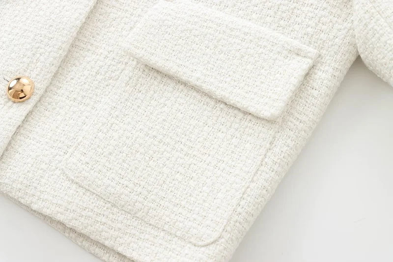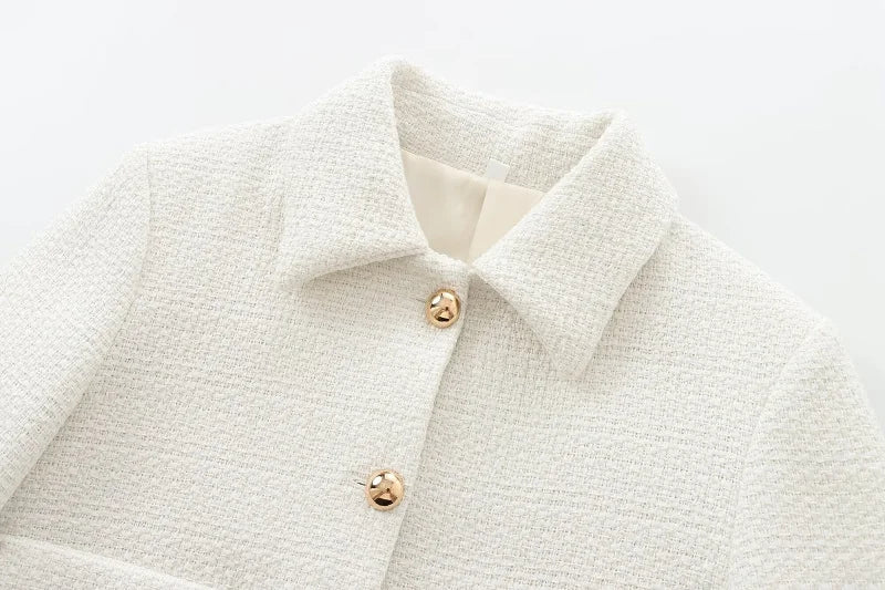 סט חולצה וחצאית בעיצוב סטריט עם סגירת כפתורים וצווארון קלאסי.