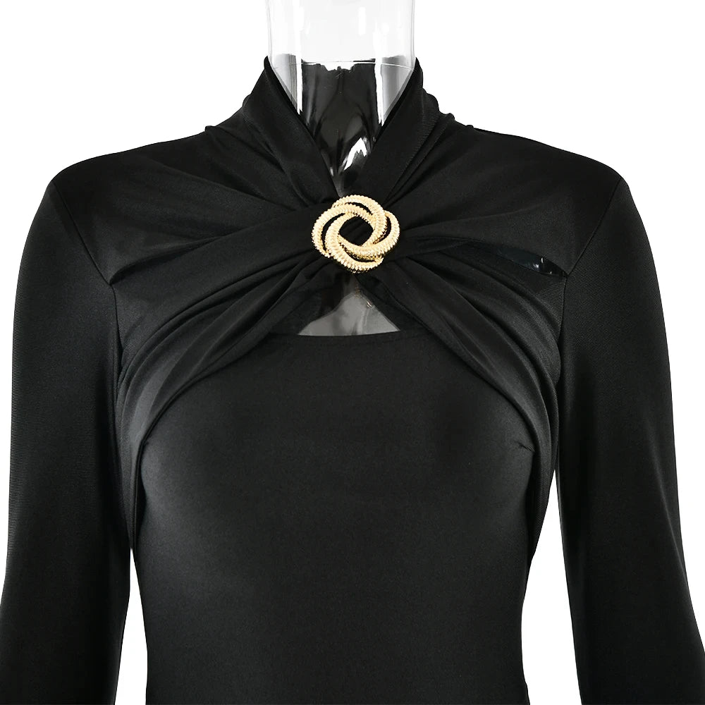עיצוב עם מחשוף עגול ושילוב פאייטים עדינים יוצר מראה בולט ומלא נוכחות.