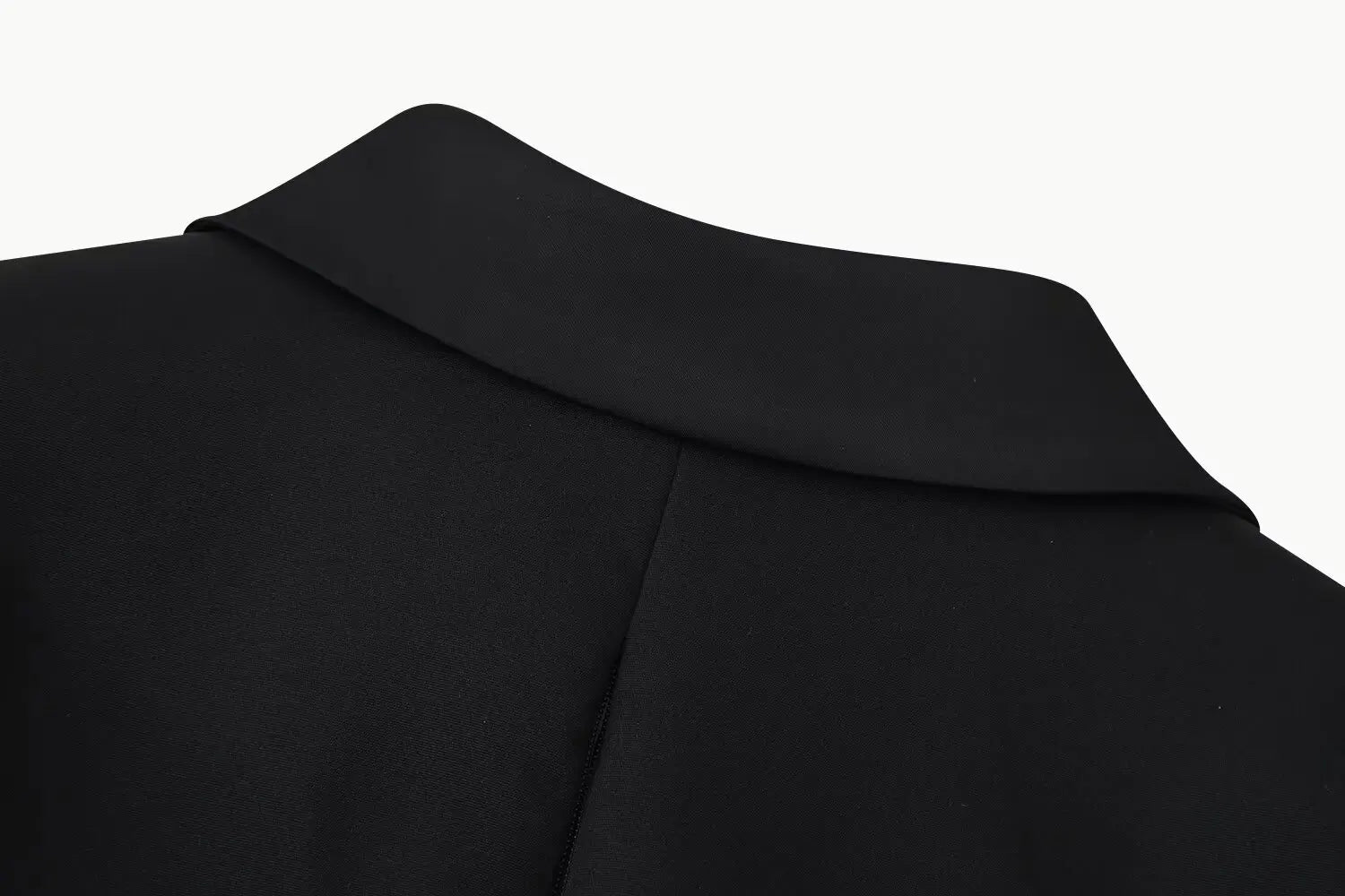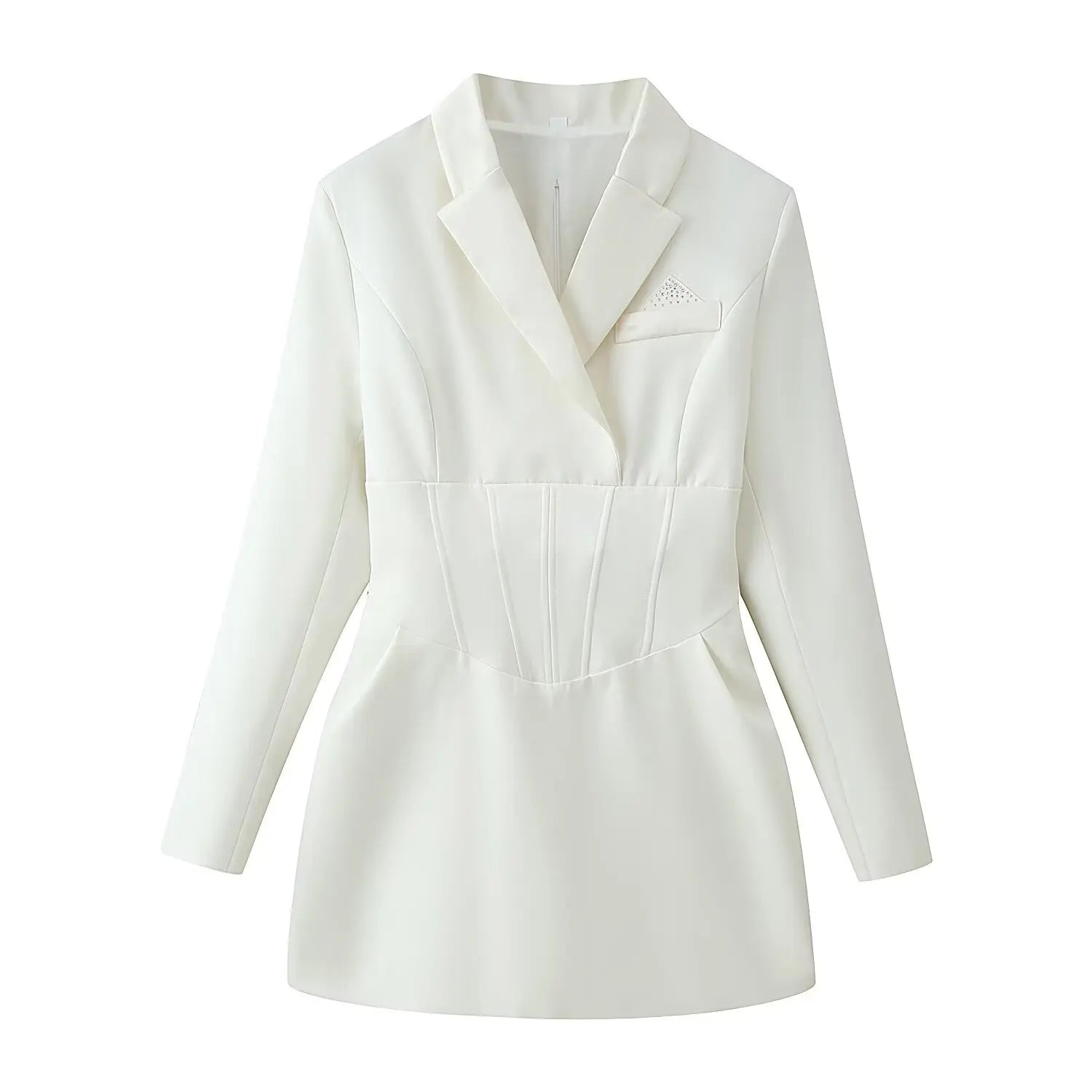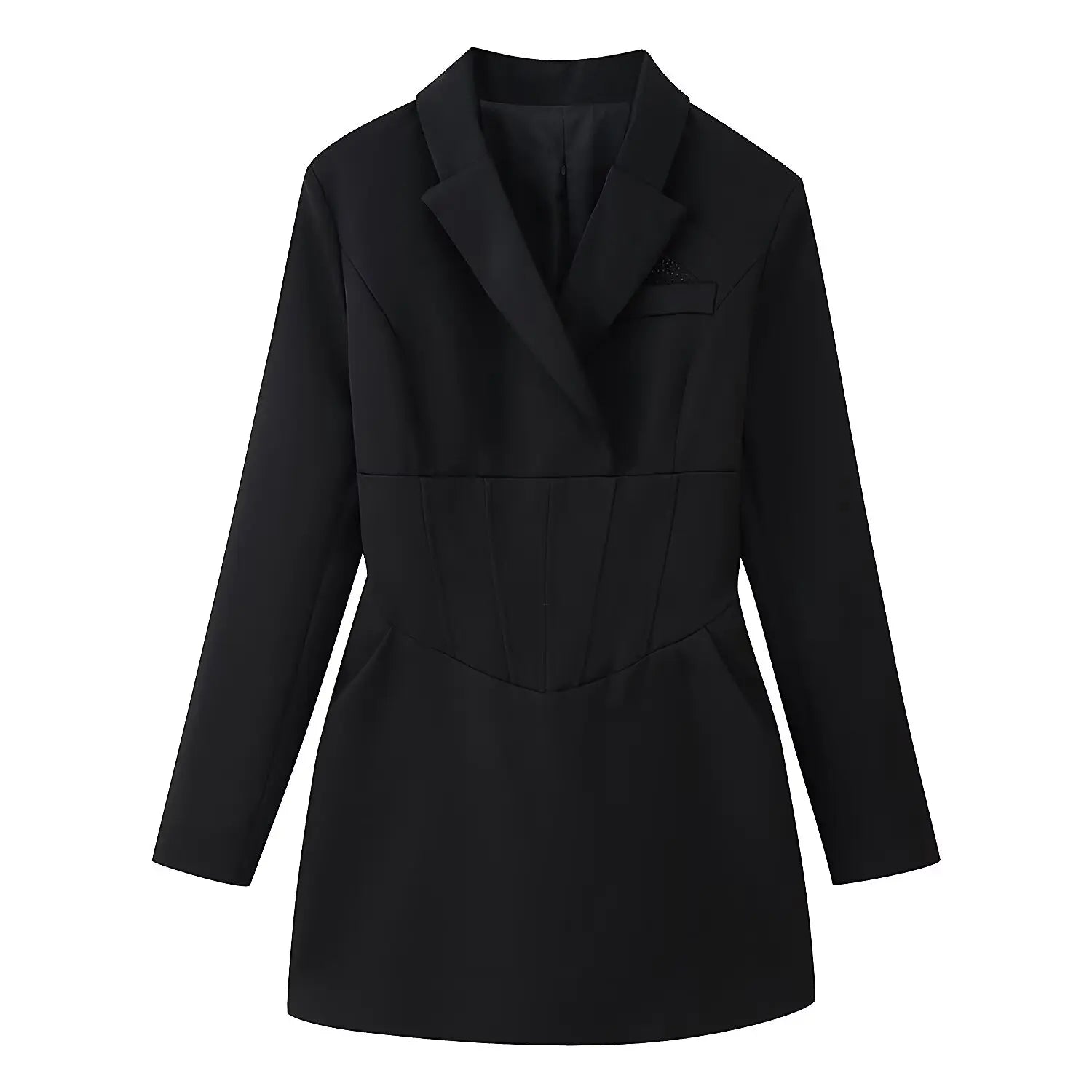 שמלה קצרה בלייזר עם מפתח וי ושרוולים ארוכים, בעיצוב נקי ונוח ליום־יום.