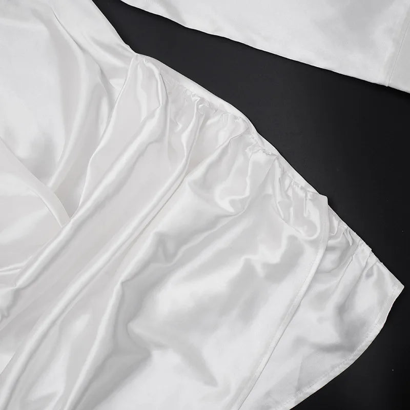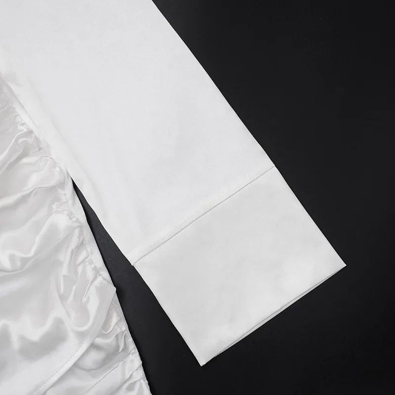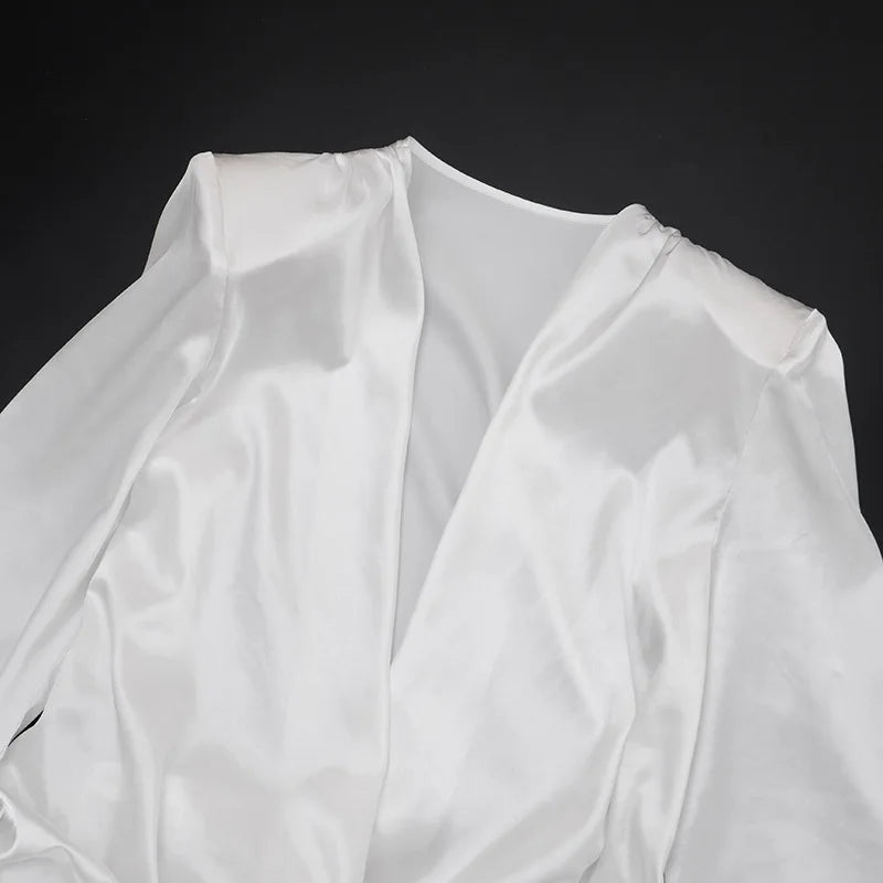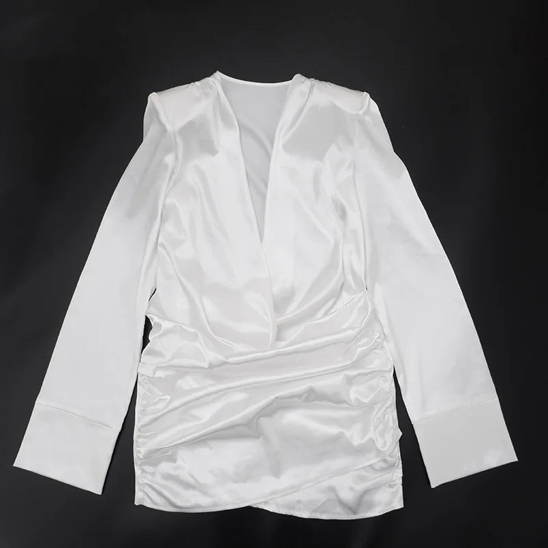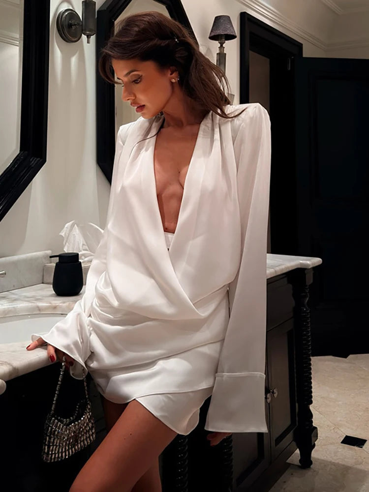 שמלה קצרה בגזרה מחמיאה עם צווארון וי ודרפינג עדין שמדגיש את קווי הגוף.