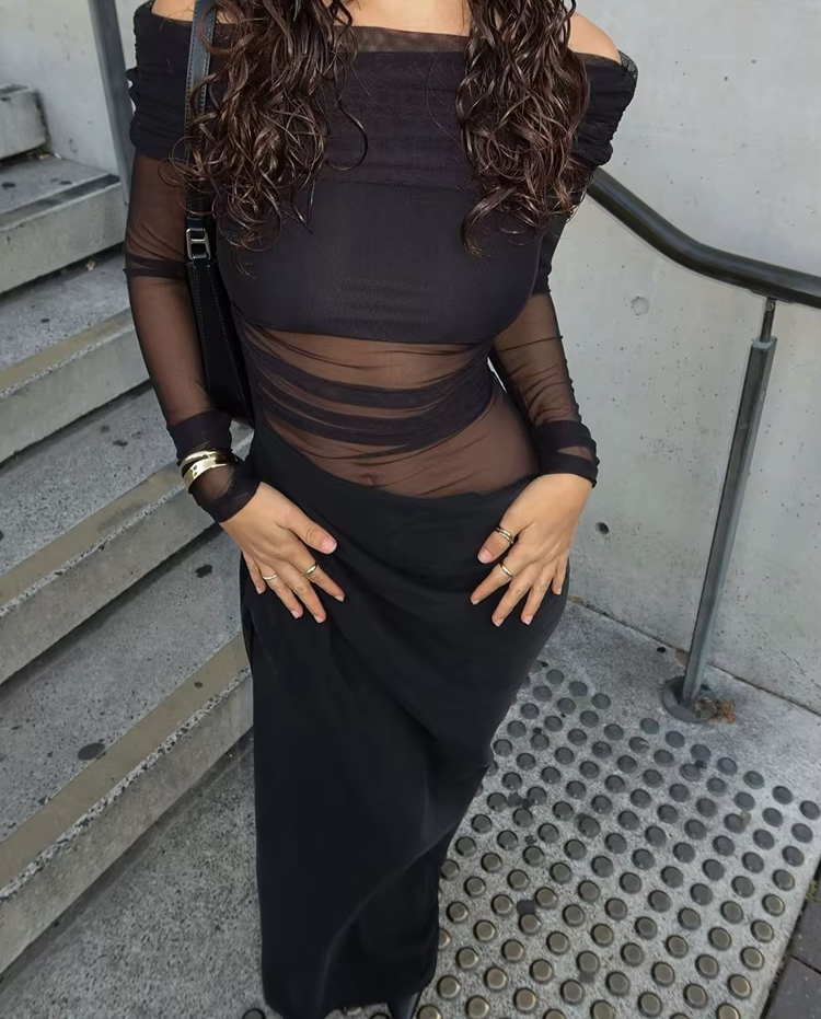 בד קליל עם נגיעה שקופה מעניק מראה ייחודי וזורם שמתאים לערב ולקיץ.