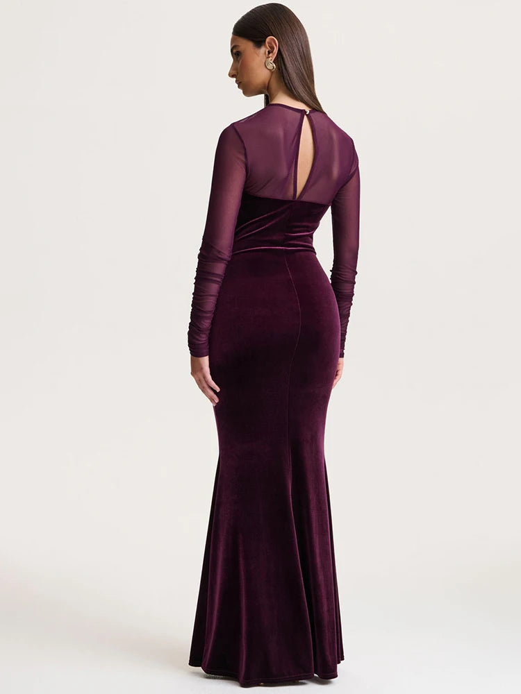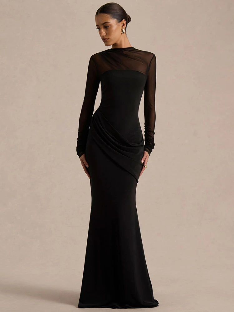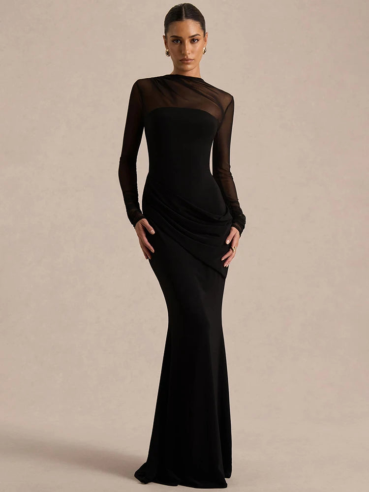 שמלה ארוכה בגזרה מחמיאה עם גב פתוח שמעניק מראה ייחודי ואלגנטי.