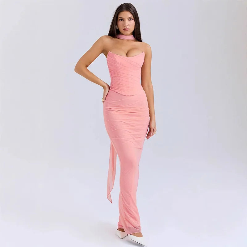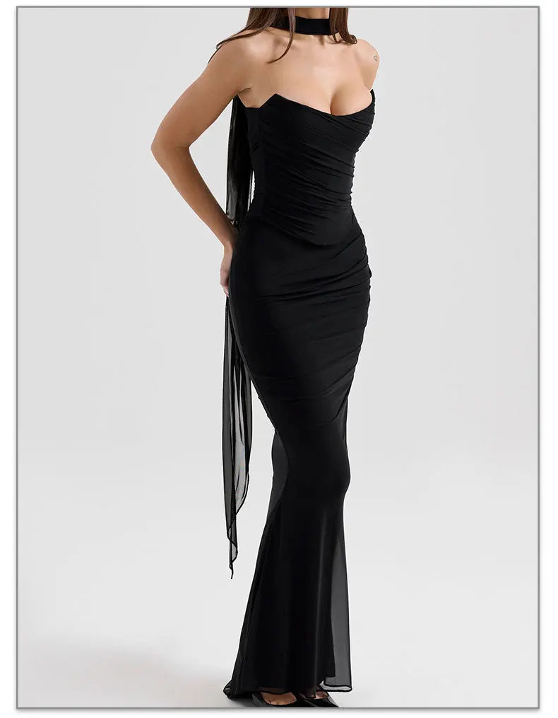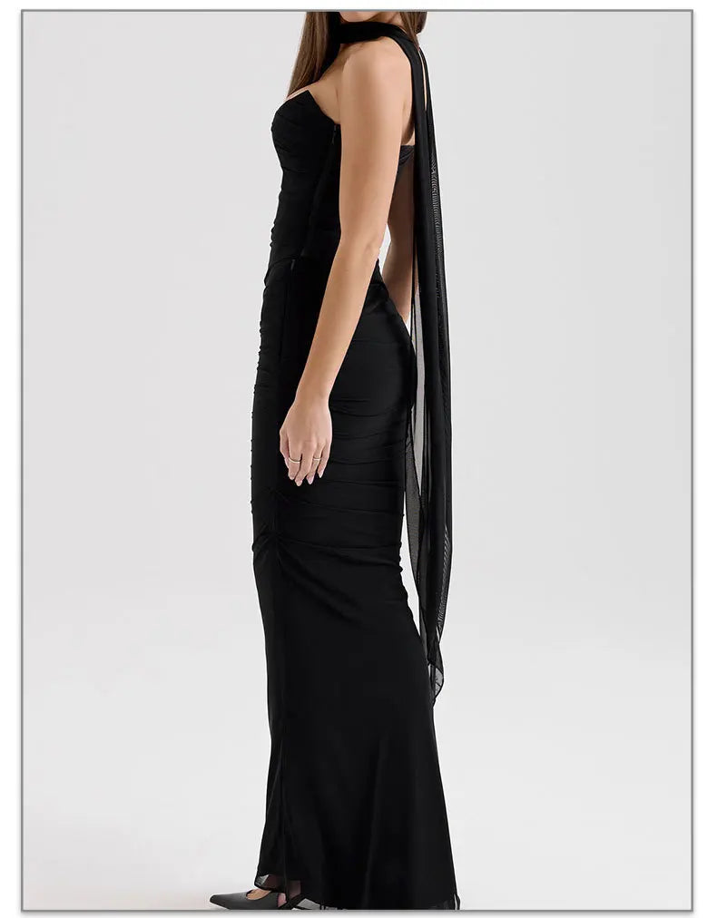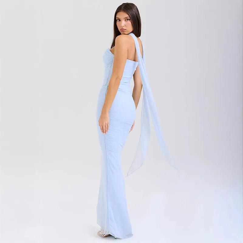 שמלת מקסי קלילה באורך מלא בעיצוב נינוח וזורם, מושלמת לימי הקיץ.