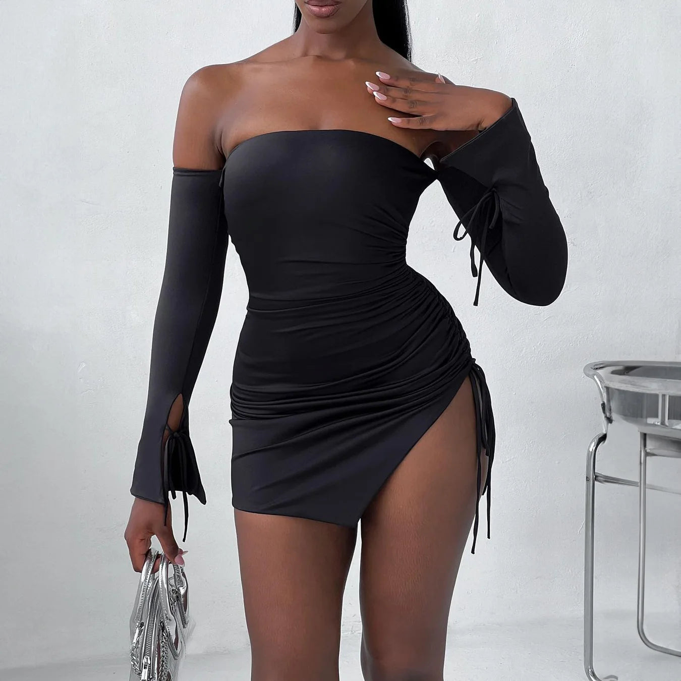 שמלה מיני עם מחשוף פתוח בגזרה מחמיאה בצורת A, עשויה בד סרוג אלסטי ונעים במגע. עיצוב עם שרוכים המוסיפים מגע של ייחודיות, שמתאים לכל עונה ומאפשר להרגיש נינוחה וסטייליסטית בו זמנית. שווה לנסות ולהרגיש את הנוחות והסטייל יחד.