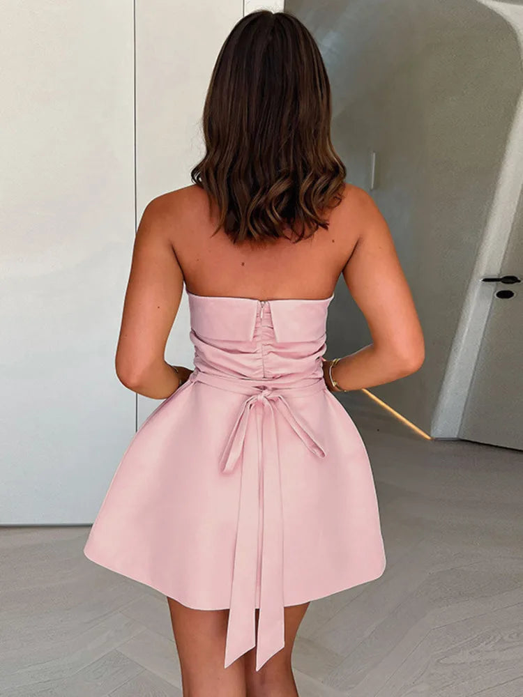 שמלה מחטבת וקצרה עם מחשוף סטרפלס וגב פתוח, בגזרת A מחמיאה ובד גמיש ונעים. מתאימה בדיוק לערב קיץ או אירוע מיוחד. זמינה במידות S-L, שווה לבדוק אם נשארה המידה שלך.