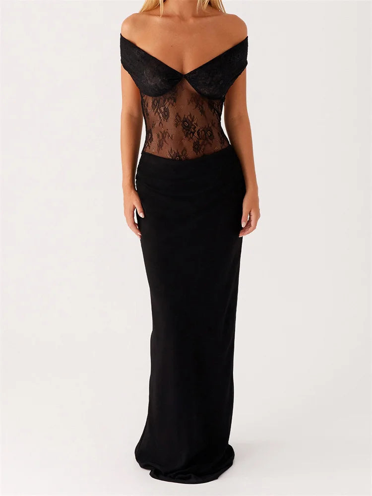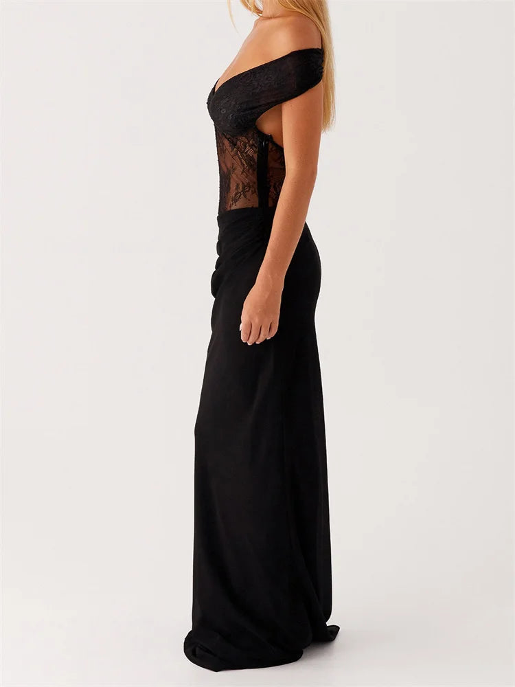 שמלת ערב מרשימה ללא כתפיות, בעיצוב מחמיא שמדגיש את קווי הגוף ומעניק מראה מהודר.