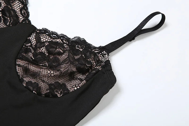 שמלת ערב ארוכה עם כתפיות דקות ועיטורי תחרה עדינים שמוסיפים טעם אלגנטי ומוקפד.