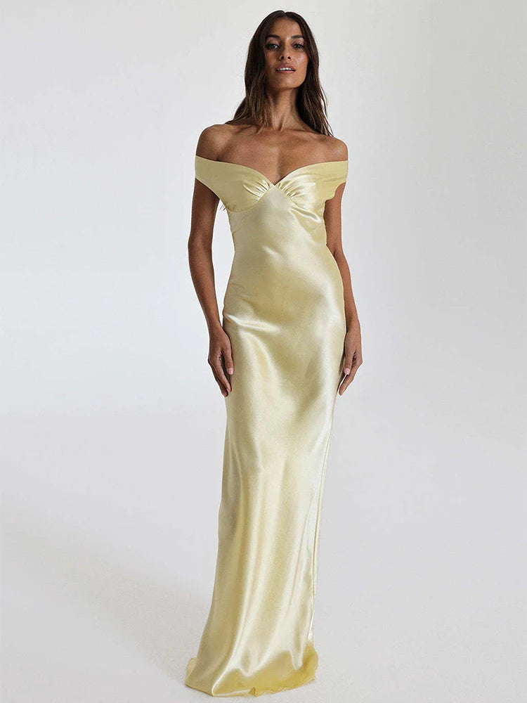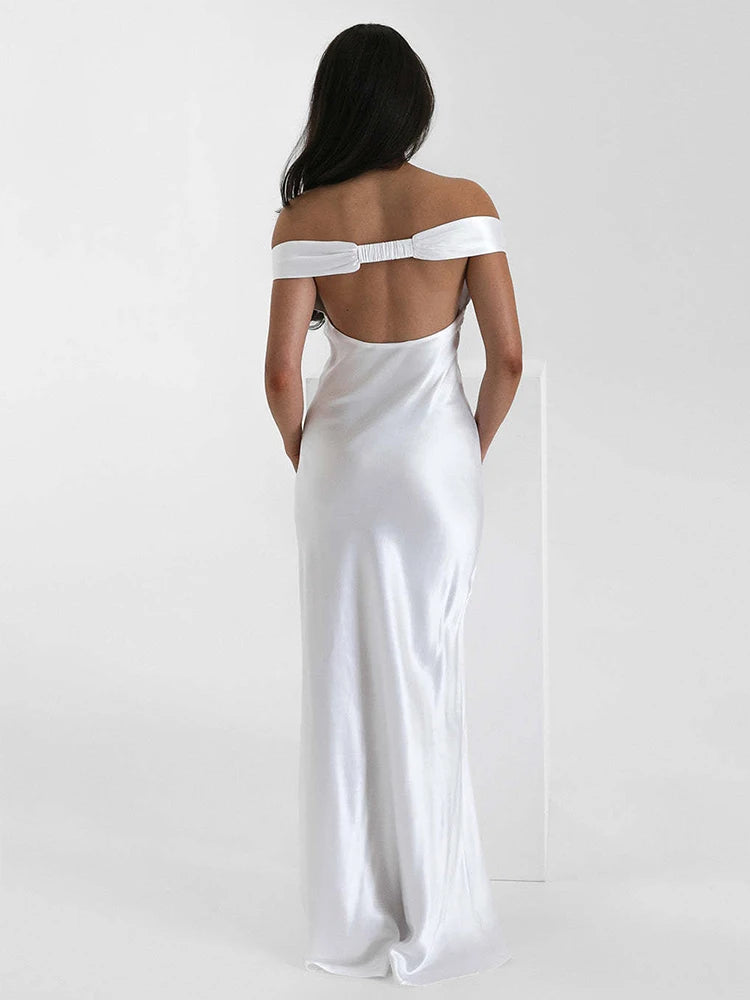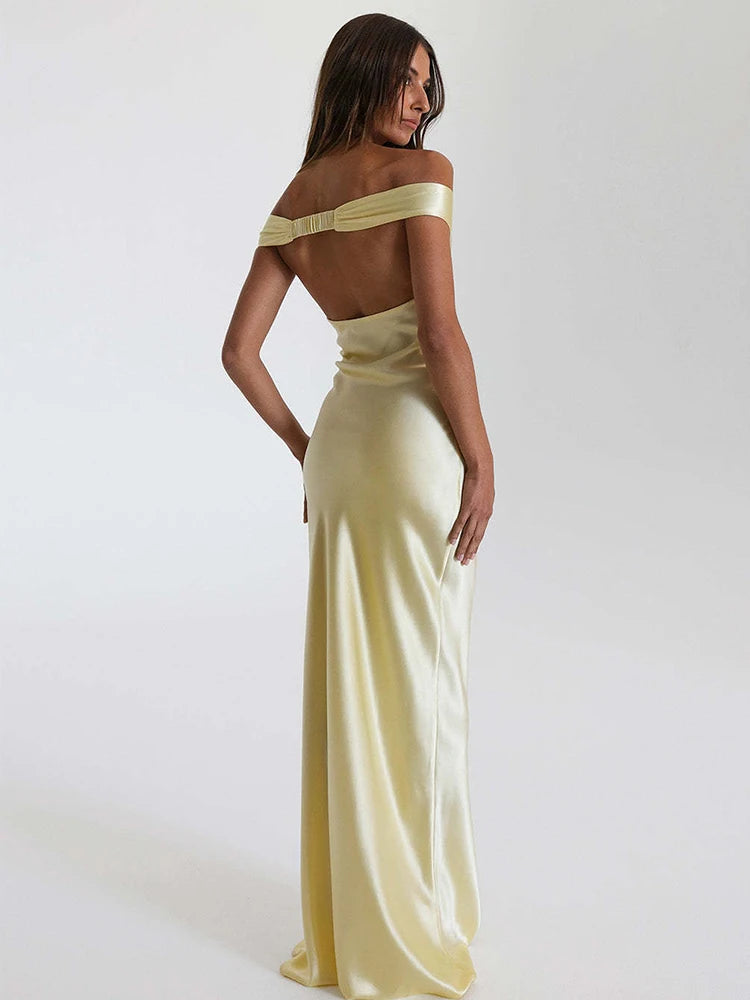שמלה אלגנטית באורך קרסול עם גב חשוף – שילוב מדויק של תחכום ונשיות.