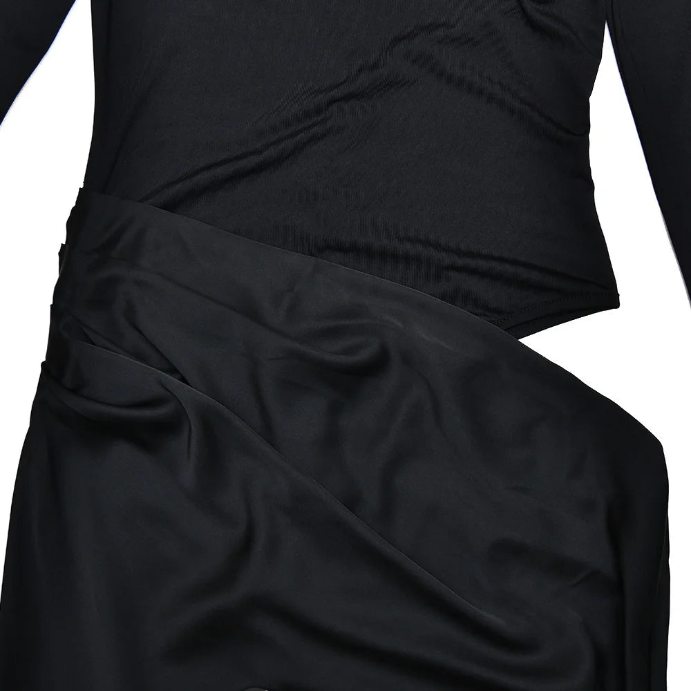 הצווארון הגבוה, הגזרה הצרה והשרוולים הארוכים יוצרים שילוב מרשים של יוקרה ואלגנטיות – מושלם לאירועים, מסיבות וערבי קיץ וסתיו.