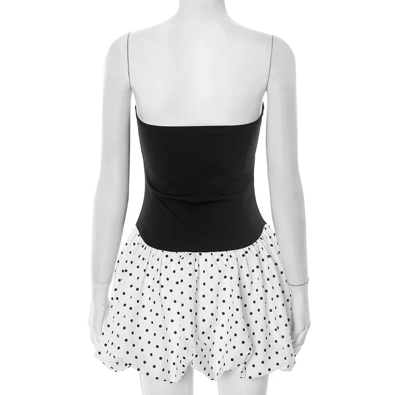 שמלה מיני מעל הברך בסילואט A עם מחשוף סטרפלס וקיפוליים, עשויה מתערובת פוליאסטר וספנדקס עם גמישות קלה. בעלת מראה נועז ומודרני, מתאימה במיוחד לאירועי קיץ ומועדונים. מושלמת למי שרוצה להרגיש ייחודית ונוחה.